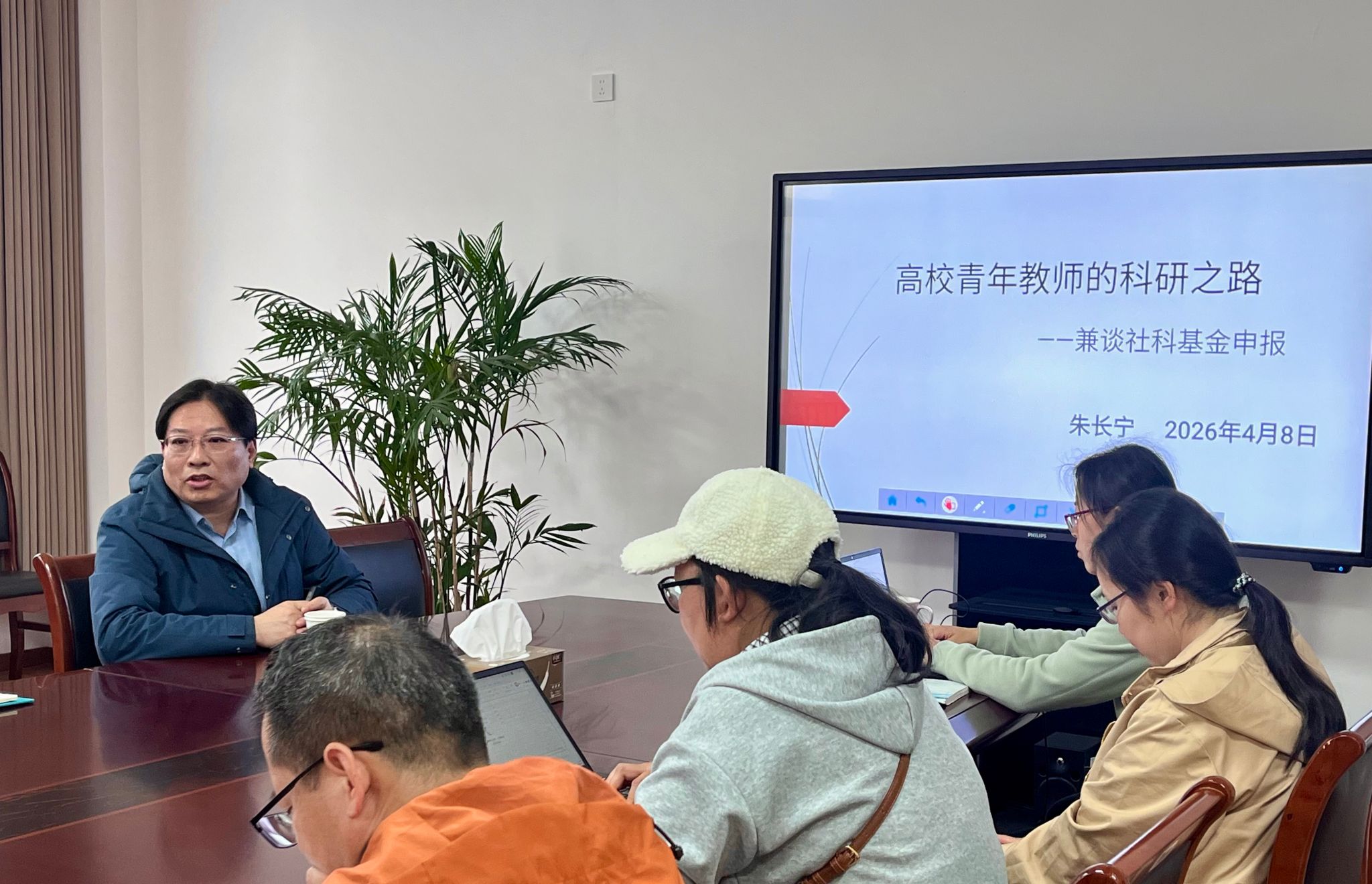 4月8日下午,外国语学院在崇文楼302会议室举办社科基金项目申报专题辅导讲座。本次讲座特邀商学院“学术带头人”、硕士生导师朱长宁教授担任主讲,外国语学院学术骨干及青年博士教师参加了活动。本次讲座由副院长李凤主持。