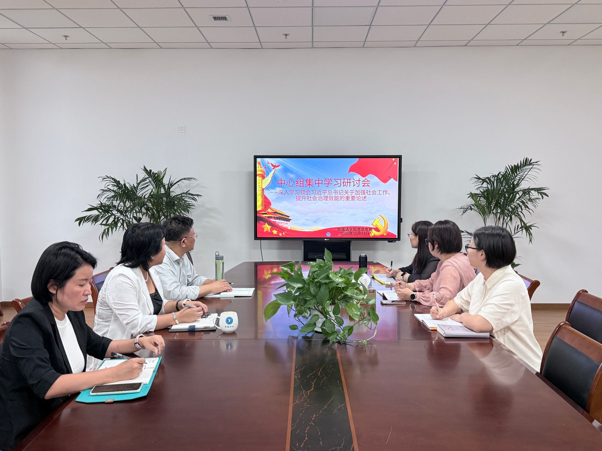 10月13日下午,外国语学院党总支部召开本学期第三次理论中心组集中学习会,深入学习领会习近平总书记关于加强社会工作、提升社会治理效能的重要论述。学院党总支部书记、外国语学院理论学习中心组组长李星主持了学习会,院领导、党总支部委员参加了会议。