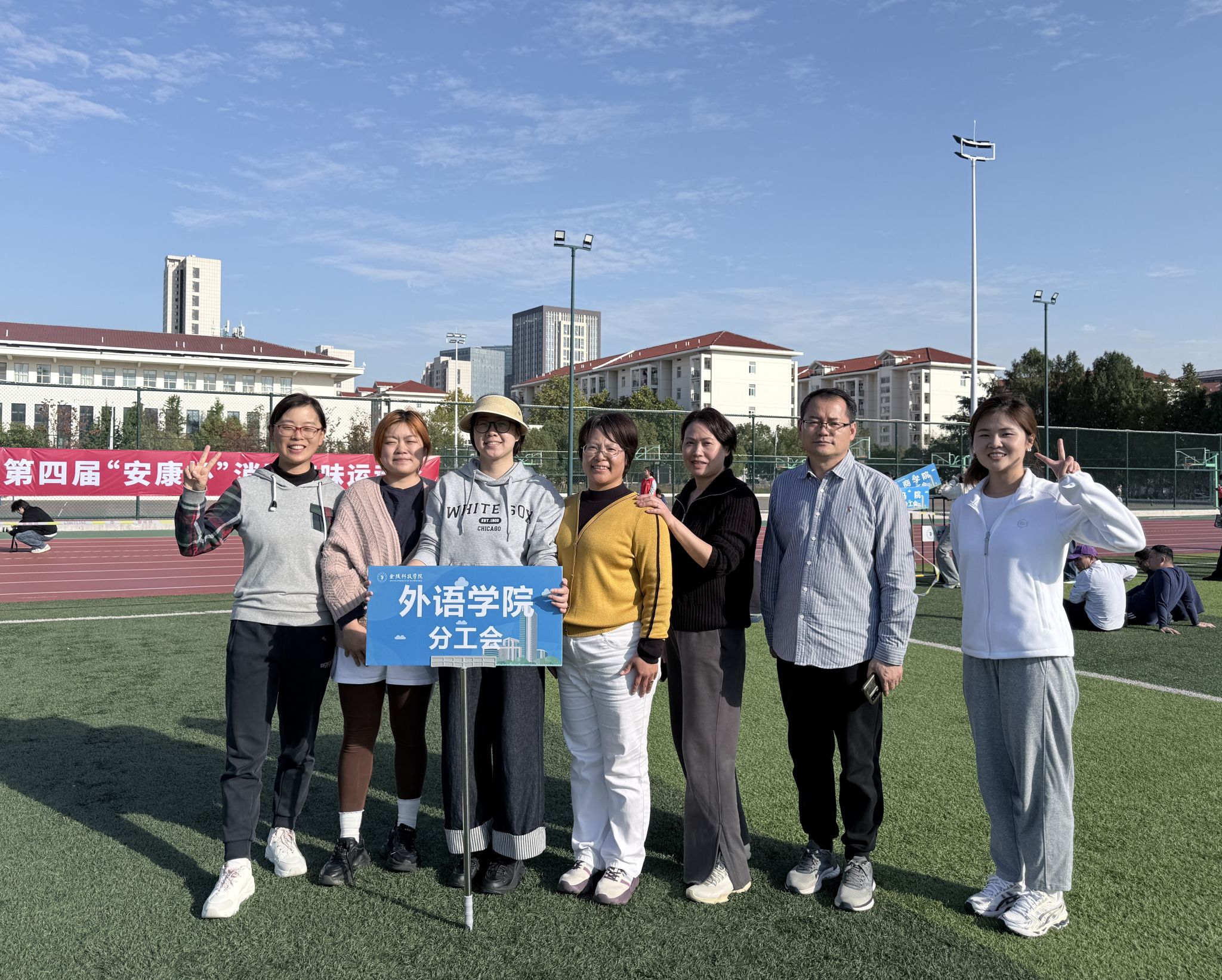 11月12日,校第四届“安康杯”消防趣味运动会在江宁校区南区田径场成功举办。外国语学院组织8名教职工组成参赛队伍,积极投身这场集竞技性、趣味性与教育性于一体的消防安全“实战演练”,在轻松活泼的氛围中提升安全意识与应急技能。