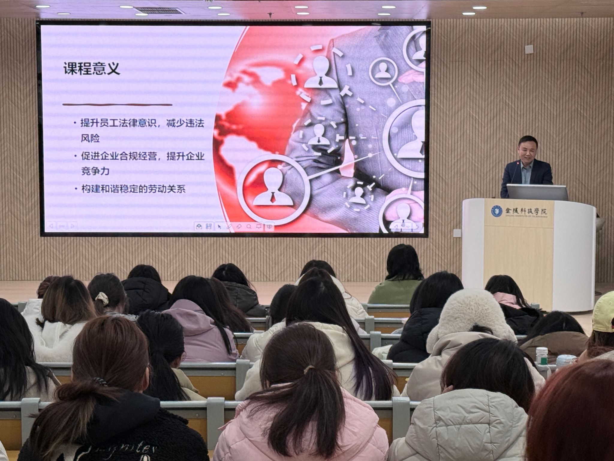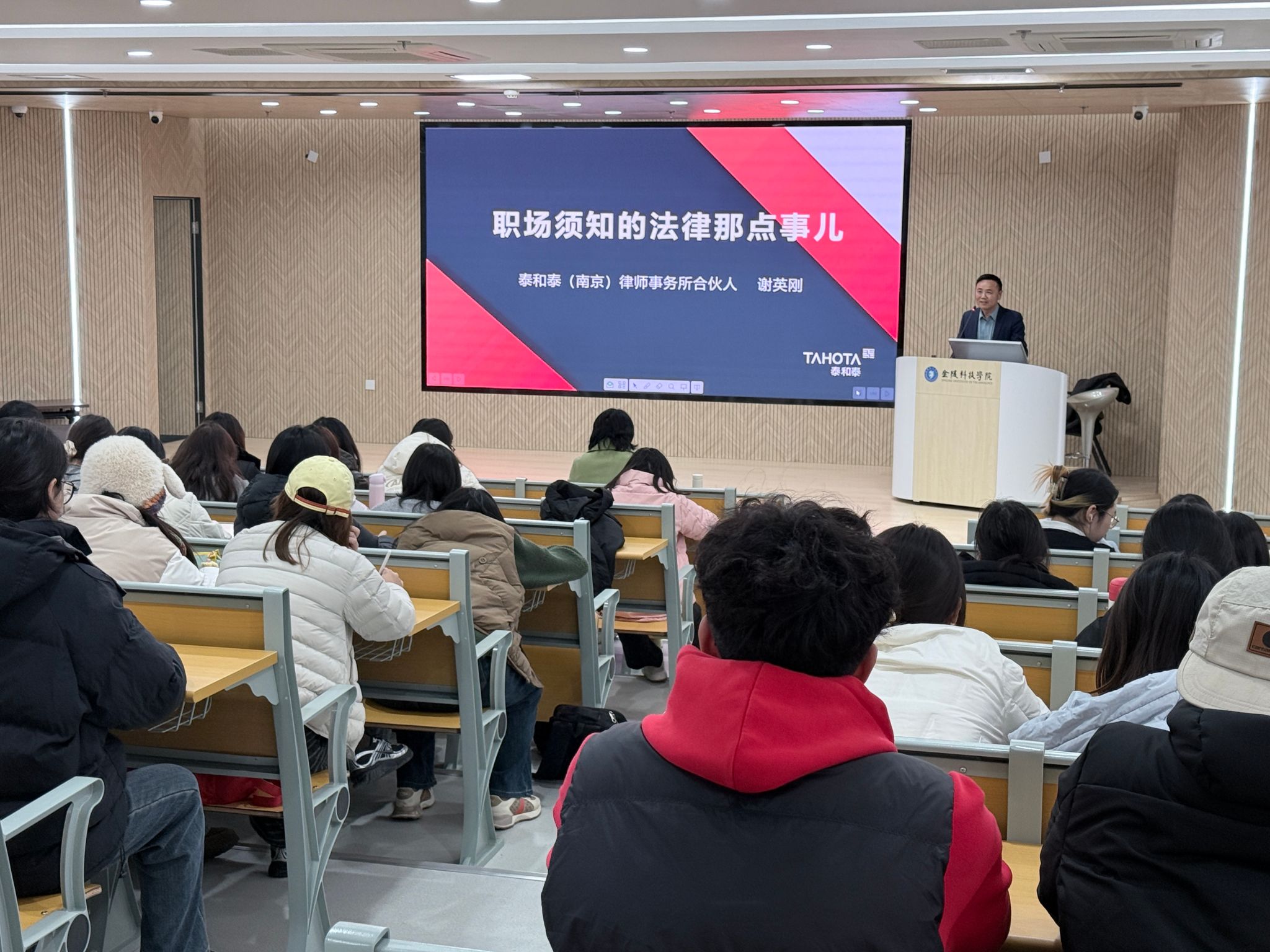 12月10日下午,外国语学院在崇文楼北楼110报告厅举办“职场须知的法律那点事”专题讲座,特邀泰和泰(南京)律师事务所合伙人谢英刚律师担任主讲嘉宾。英语专业大二、大三学生及部分教师代表参加了本次活动,旨在提升外语专业学生的法律意识与职场风险应对能力。
